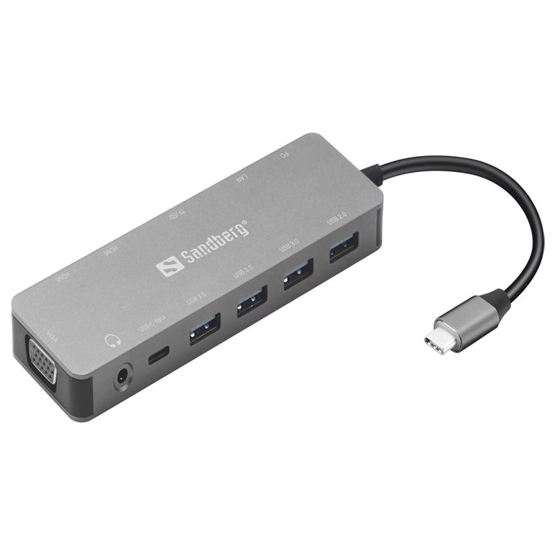 Station d'accueil SANDBERG Dock TRAVEL USB-C 13 en 1 - Gris