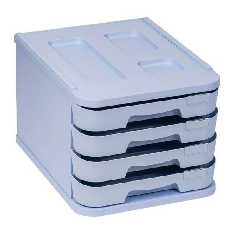 Bloc 4 tiroirs Faibo - porte étiquette sur chaque tiroir - Conçu pour pouvoir être empilés verticalement formant un solide bloc - Bloc avec quatre tiroirs de 5 cm pour le rangement de documents, avec système de blocage de tiroirs - Format : A4 - deux capuchons décoratifs - Dimension: 28.5 x 37.5 x 23 Cm - Couleur : Bleu Pastel Opaque Livraison Gratuite à partir de 300DT d'Achat
