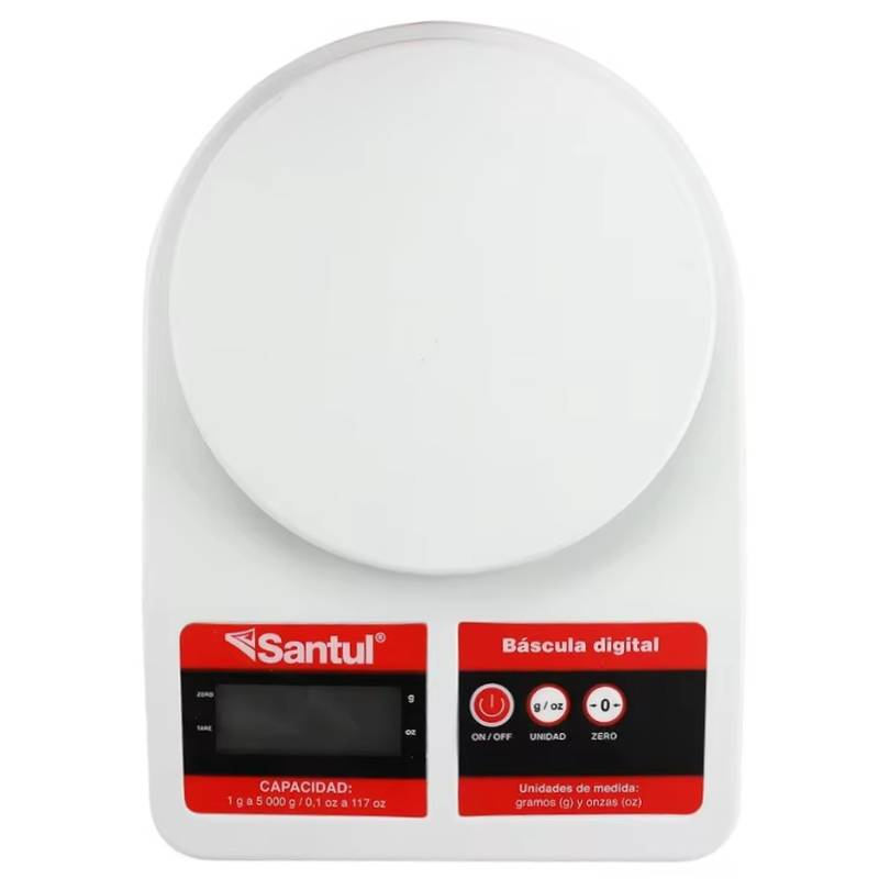 Balance De Cuisine Santul 5927 - Écran: LCD - Portée maximale: 5 kg - Précision: 1 g - Alimentation: 2 x 1.5V AA piles incluses - Fonction TARE - Matière: Plastique ABS - Diamètre de plateau: 14,5 cm - Dimensions: 16,5 x 20 x 3,5 cm - Couleur: Blanc Retrait en Magasin ou Livraison Gratuite *